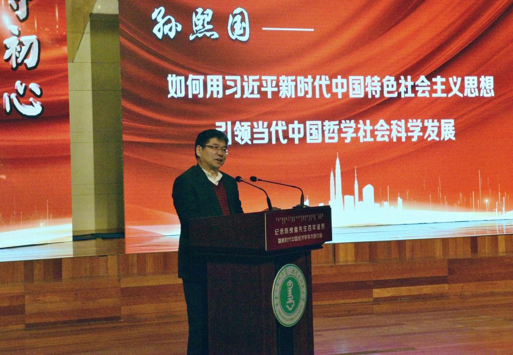孙熙国就如何用习近平新时代中国特色社会主义思想引领当代中国哲学社会科学发展,明确指出,当代中国哲学社会科学的创新和发展,必须在习近平新时代中国特色社会主义思想引领和指导下,立足国内实际问题,运用中国文化和西方文化,综合创新,即器见理,从特殊中发现普遍,从个别中提升出一半,为人类对更好社会制度的探索提供中国方案。