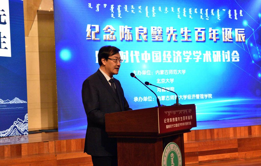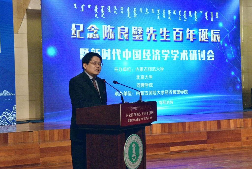 第十三届全国政协常委、经济委员会副主任、北京大学新结构经济学研究院、南南合作发展学院院长、国家发展研究院名誉院长林毅夫,北京大学经济学院院长、教育部高校经济学类专业教指委副主任委员董志勇,北京大学习近平新时代中国特色社会主义思想研究院常务副院长孙熙国,吉林大学经济学院院长、教育部长江学者特聘教授李晓,河套学院党委委员、副院长石文清,内蒙古财经大学原校长尹正业,中央财经大学税务学院原院长汤贡亮,我校党委书记黄雅丽、校长云国宏、副校长赵东海出席会议。我校副校长王来喜主持会议。陈良璧先生亲友,区内外高校、各相关盟市、厅局级、旗县区的负责同志,老一辈专家学者、校友们,我校相关单位负责同志,威尼斯官网40余名教师、400多名学生以及新闻媒体朋友参加会议。