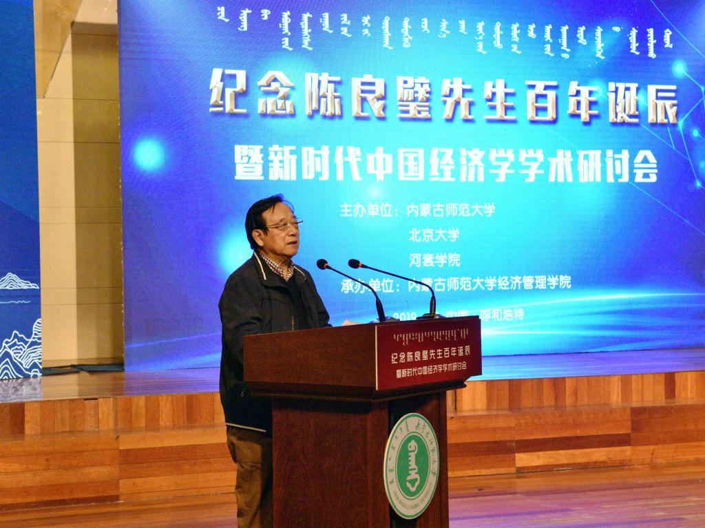 汤贡亮致辞。他细细回忆了与陈良璧先生相处的点点滴滴,与大家分享珍藏多年的宝贵记忆。他说,陈良璧先生是当时社会少有的既精通西方经济学,又精通马克思主义经济学的经济学大家。先生以其卓越的学术作为和学术思想,为内蒙古理论经济学的繁荣发展做出了突出贡献,为民族地区培养了无数的财经型人才,也为37000cm威尼斯青年学子树立了标杆和榜样。我们要学习先生为了祖国、为了家乡,辛勤耕耘、教书育人,以毕生的精力致力于理论经济学的教学科研和民族地区经济学专业学科建设的家国情怀,忠诚于党的教育事业,教书育人,上好每一堂课,将他作为做人做事做学问的楷模,在他的光芒照耀下砥砺前行。