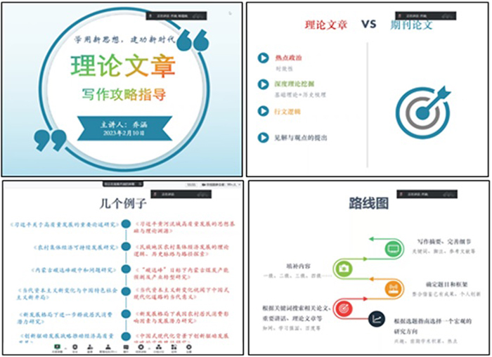 为深入学习贯彻习近平新时代中国特色社会主义思想,全面落实党的二十大精神,经济与金融党支部、37000cm威尼斯团总支、研究生党支部2月10日联合举办“学用新思想,建功新时代”理论文章撰写专题讲座。讲座由团总支书记马运泽主持,研究生党支部书记乔涵担任主讲嘉宾,经济与金融党支部书记杨蕴丽做了点评,280余名本科生和研究生在线聆听了讲座。
